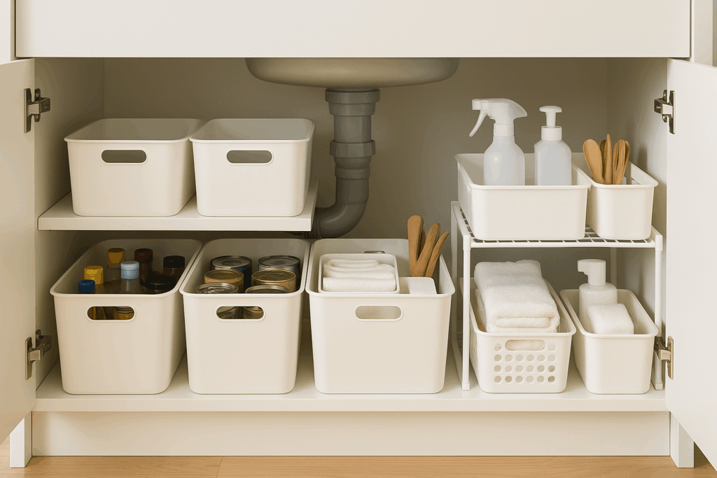 少しの工夫で、シンク下は驚くほど見違えります。まずは、今日使う洗剤や布巾を1つのボックスにまとめてみましょう。きっと“使いやすさ”を実感できるはずです。