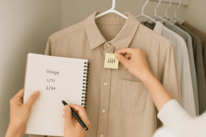「使っていない」を“感覚”でなく“数字”で把握すると、より客観的に判断できます。最初のうちは、よく使うと思っていたアイテムほど意外と使っていないことに気づくかもしれません。たとえば、洋服ならクローゼットに着た日を記録する付箋を貼っておく、キッチン用品ならノートに「使用日」を簡単にメモするなど。1か月ごとに見返すと、「この1か月で使ったのはこれだけだったんだ」と数字ではっきり見えてきます。そうすることで、手放す判断に迷いが少なくなり、納得感を持って整理が進められます。また、記録する行為そのものが、モノを“意識して選ぶ”練習にもなります。