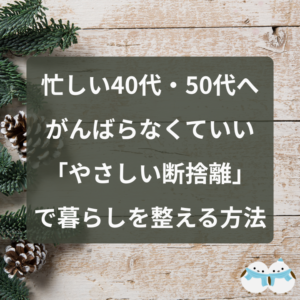 ここまで、40代・50代からの「やさしい断捨離」についてお伝えしてきました。